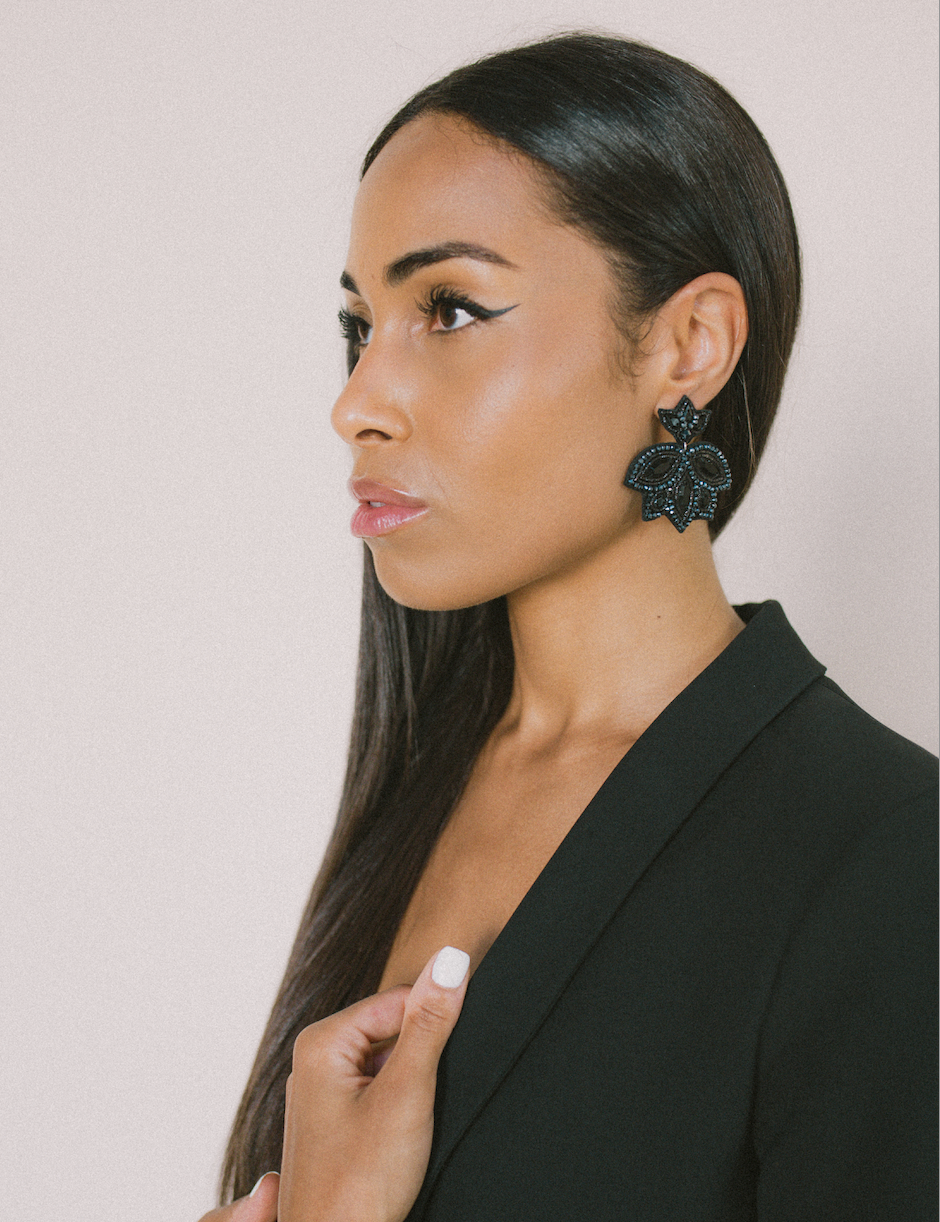 Boucles d'oreilles brodées Perlées "Black" Joséphine
