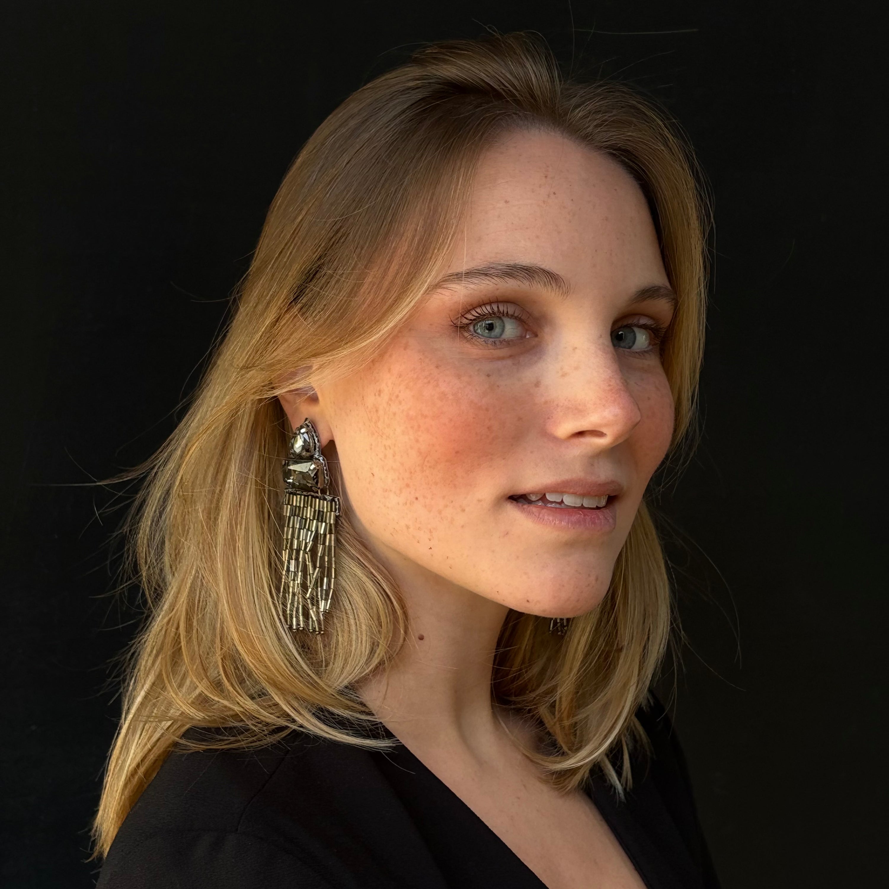 Boucles d'oreilles brodées Perlées "Black" Joséphine